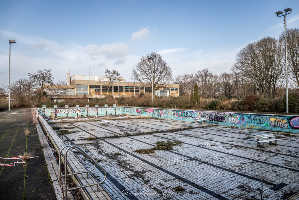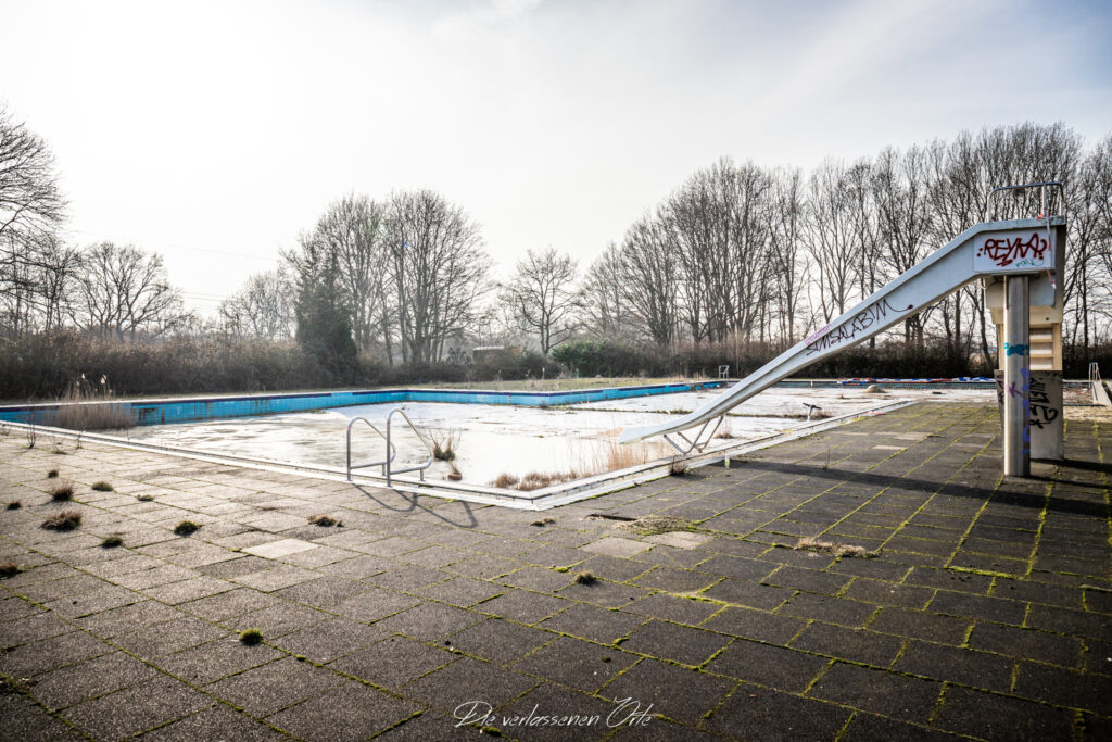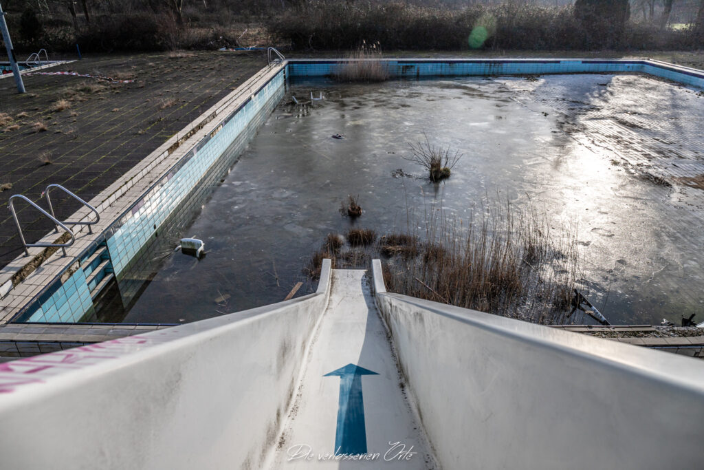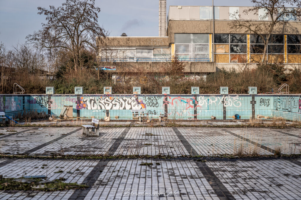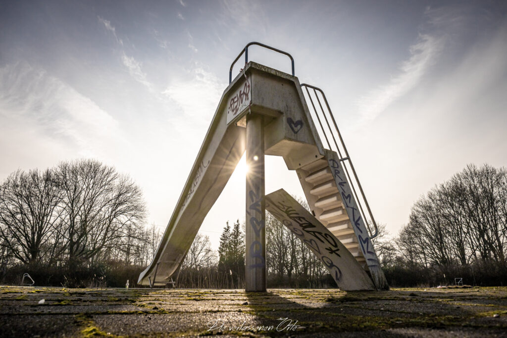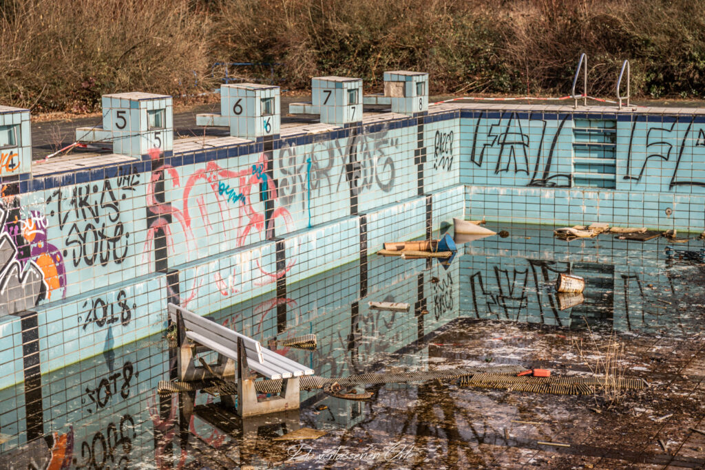 Bei winterlichen Temperaturen haben ich dieses alte, verlassene Freibad besucht. Es steht schon ein paar Jahre leer, es war wohl nicht mehr wirtschaftlich zu betreiben. Vom Beckenrand sollte man jetzt besser nicht springen, das würde wehtun 😉