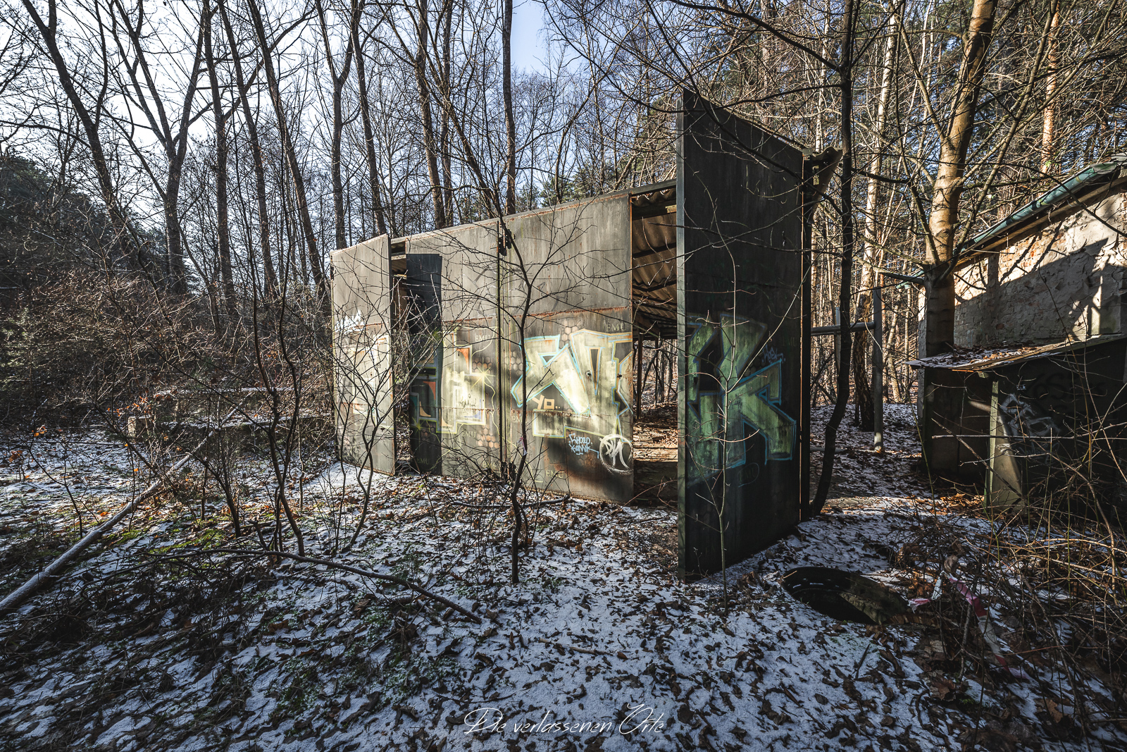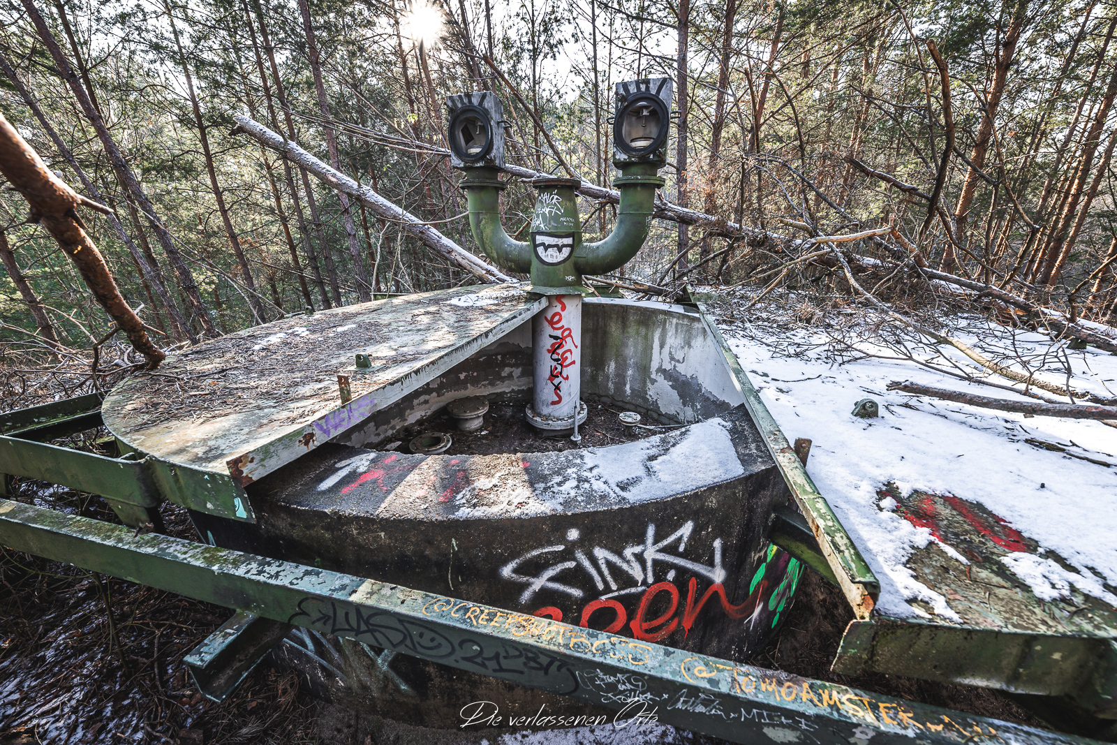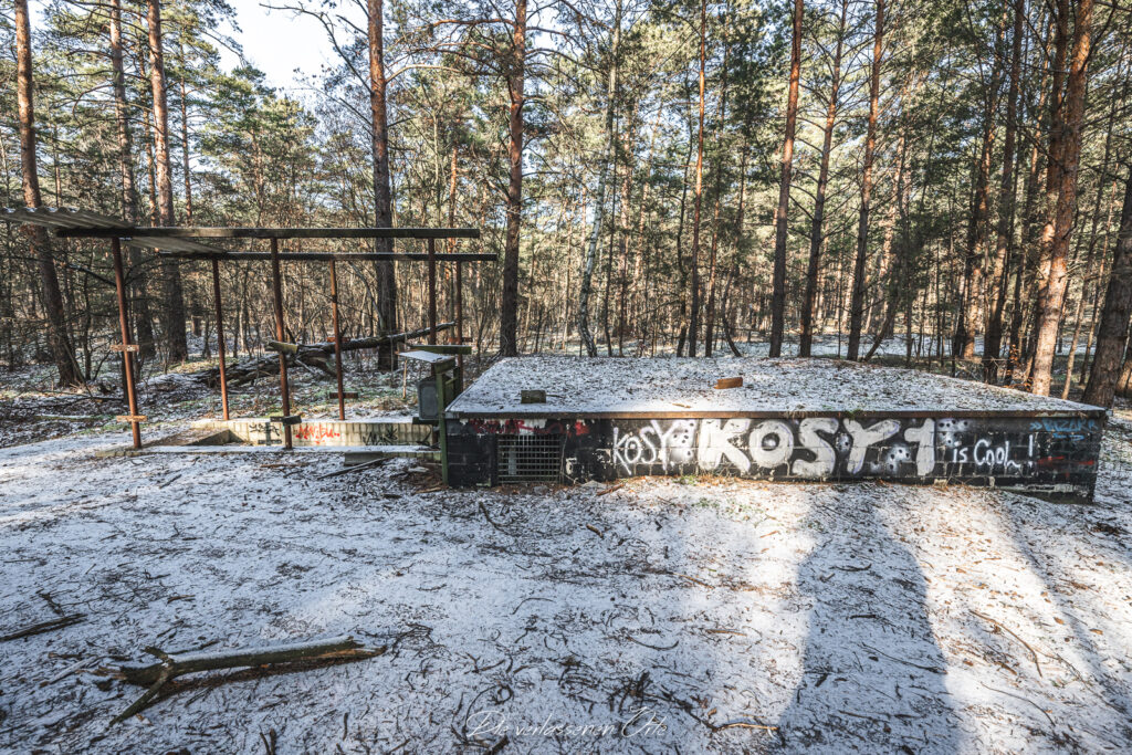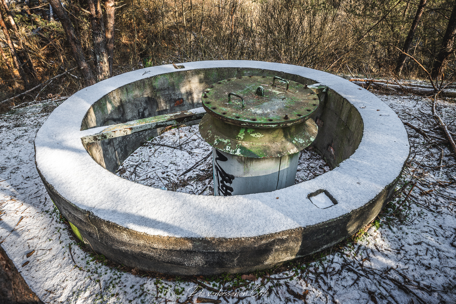 Meine Reise führt mich zu einem abgelegenen und gut getarnten ehemaligen Tanklager der Nationalen Volksarmee. Abseits öffentlicher Wege, tief im Wald verborgen, liegt ein weitläufiges Gelände, das einst eine wichtige logistische Rolle spielte. Die Anlage bestand nicht nur aus einem einzelnen Depot, sondern aus mehreren voneinander getrennten, teilweise unterirdischen Tanklagern, die über das Areal verteilt waren und bewusst schwer zu entdecken angelegt wurden. Schon bei der Anfahrt wird deutlich, wie gut dieser Standort getarnt war. Keine auffälligen Gebäude, keine markanten Zufahrten – vieles ist heute überwachsen, verschneit oder nur noch anhand von Betonresten und technischen Strukturen zu erkennen. Erst bei genauerem Hinsehen offenbaren sich die Dimensionen des Geländes.