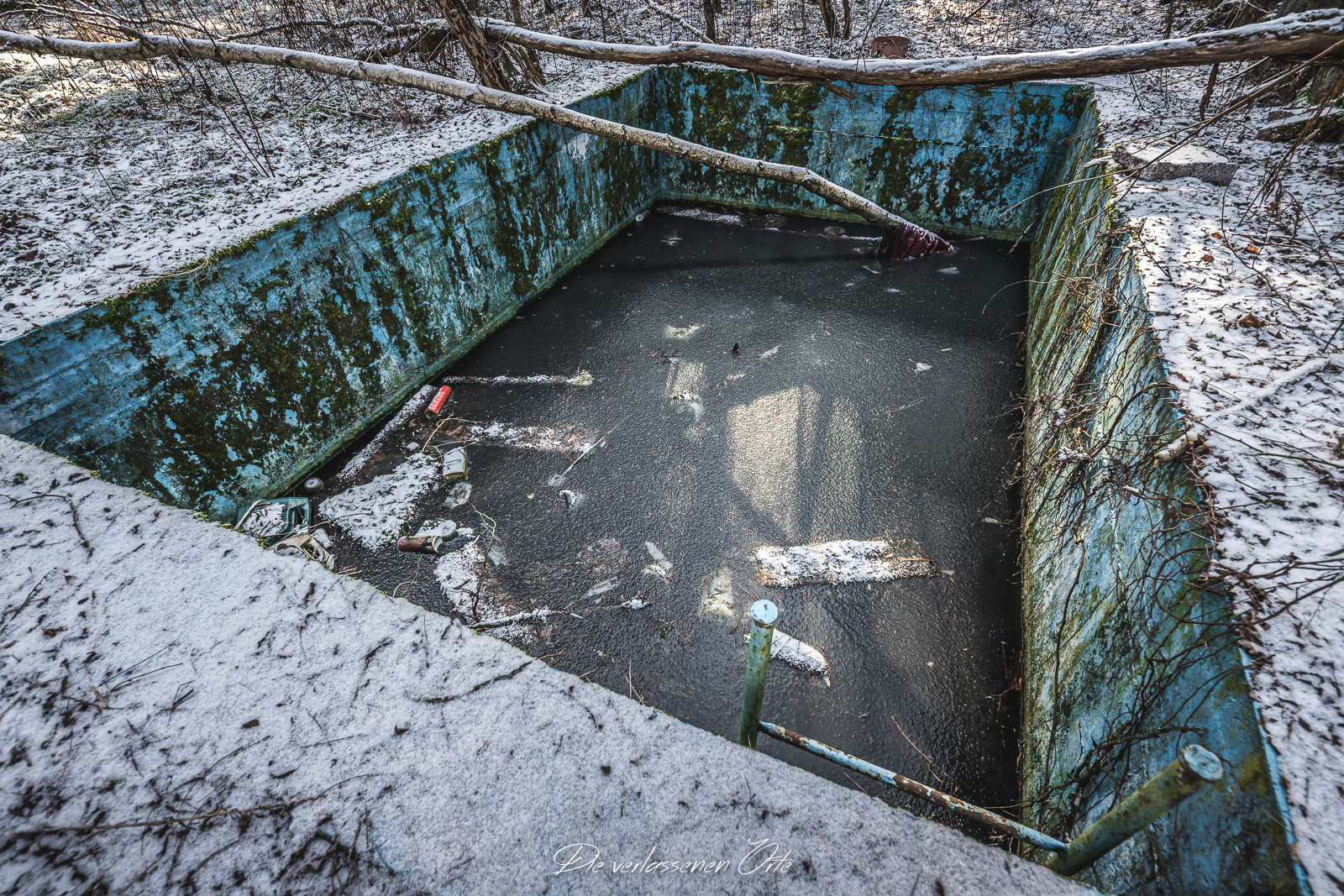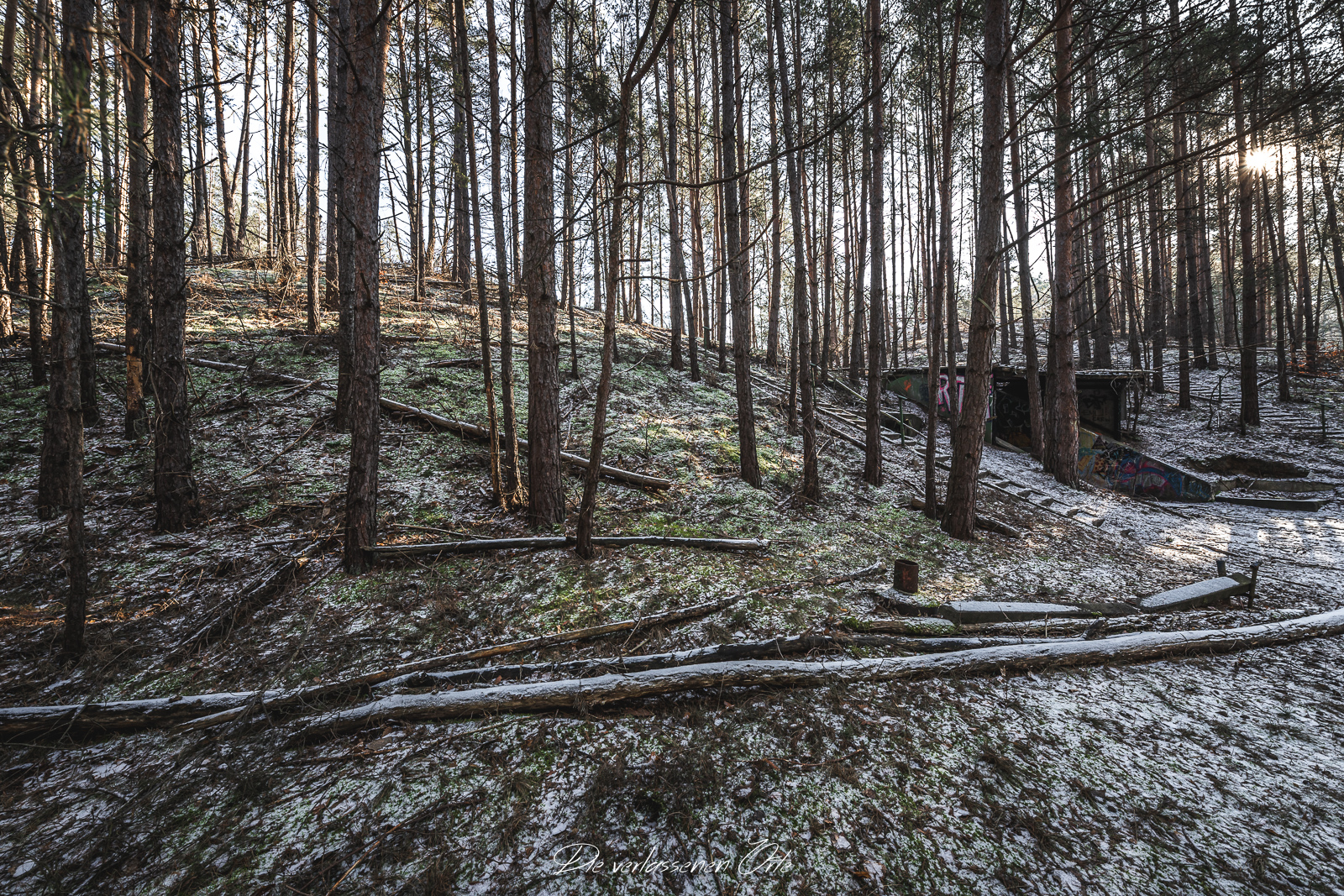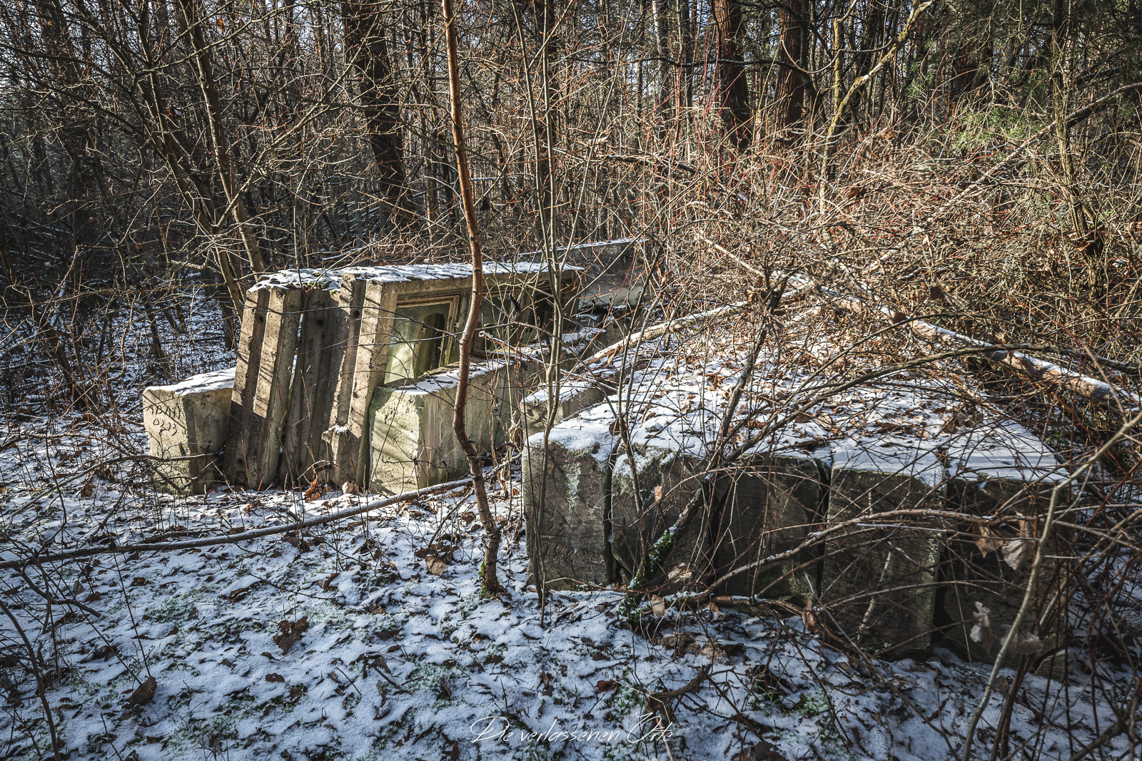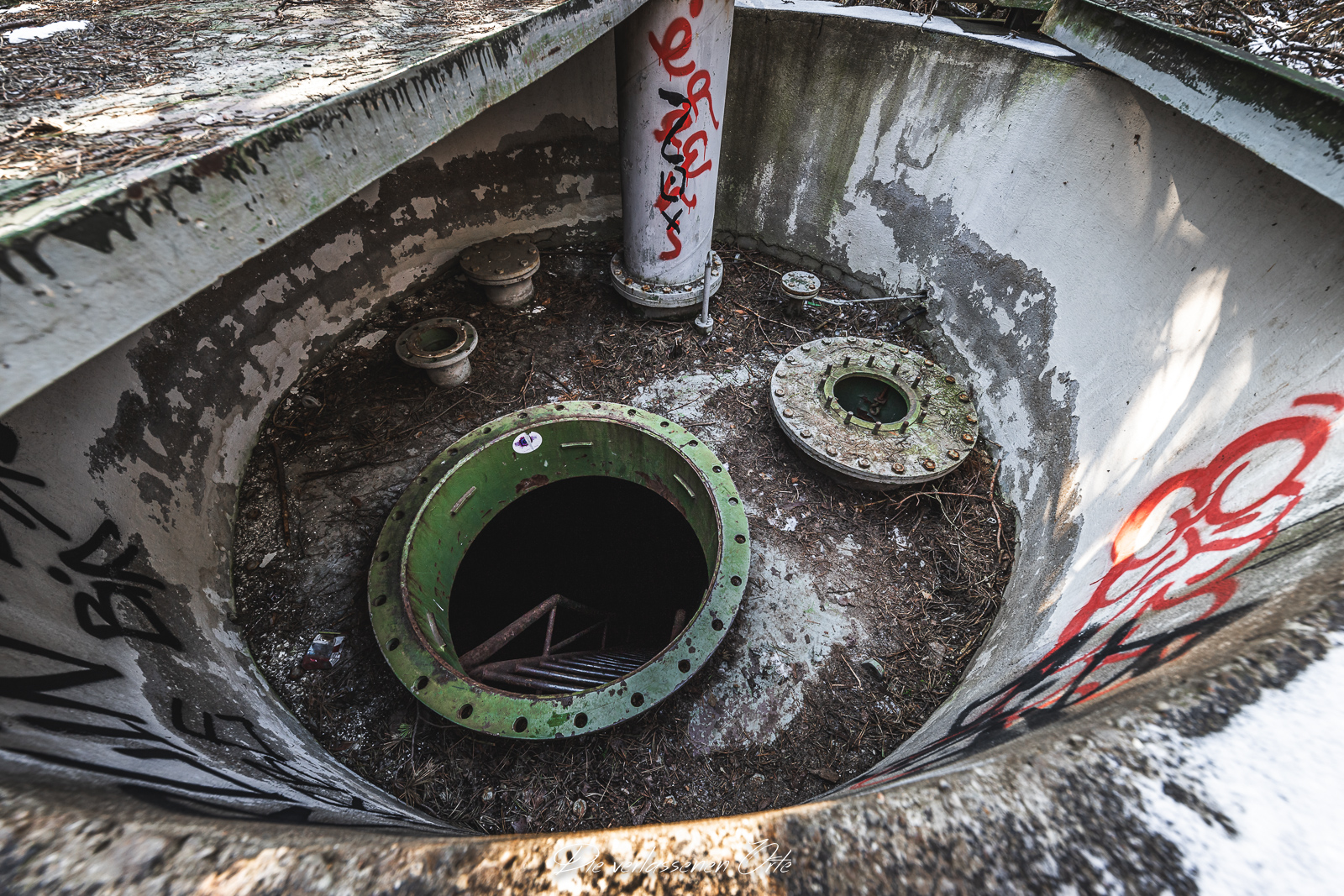 Meine Reise führt mich zu einem abgelegenen und gut getarnten ehemaligen Tanklager der Nationalen Volksarmee. Abseits öffentlicher Wege, tief im Wald verborgen, liegt ein weitläufiges Gelände, das einst eine wichtige logistische Rolle spielte. Die Anlage bestand nicht nur aus einem einzelnen Depot, sondern aus mehreren voneinander getrennten, teilweise unterirdischen Tanklagern, die über das Areal verteilt waren und bewusst schwer zu entdecken angelegt wurden. Schon bei der Anfahrt wird deutlich, wie gut dieser Standort getarnt war. Keine auffälligen Gebäude, keine markanten Zufahrten – vieles ist heute überwachsen, verschneit oder nur noch anhand von Betonresten und technischen Strukturen zu erkennen. Erst bei genauerem Hinsehen offenbaren sich die Dimensionen des Geländes.