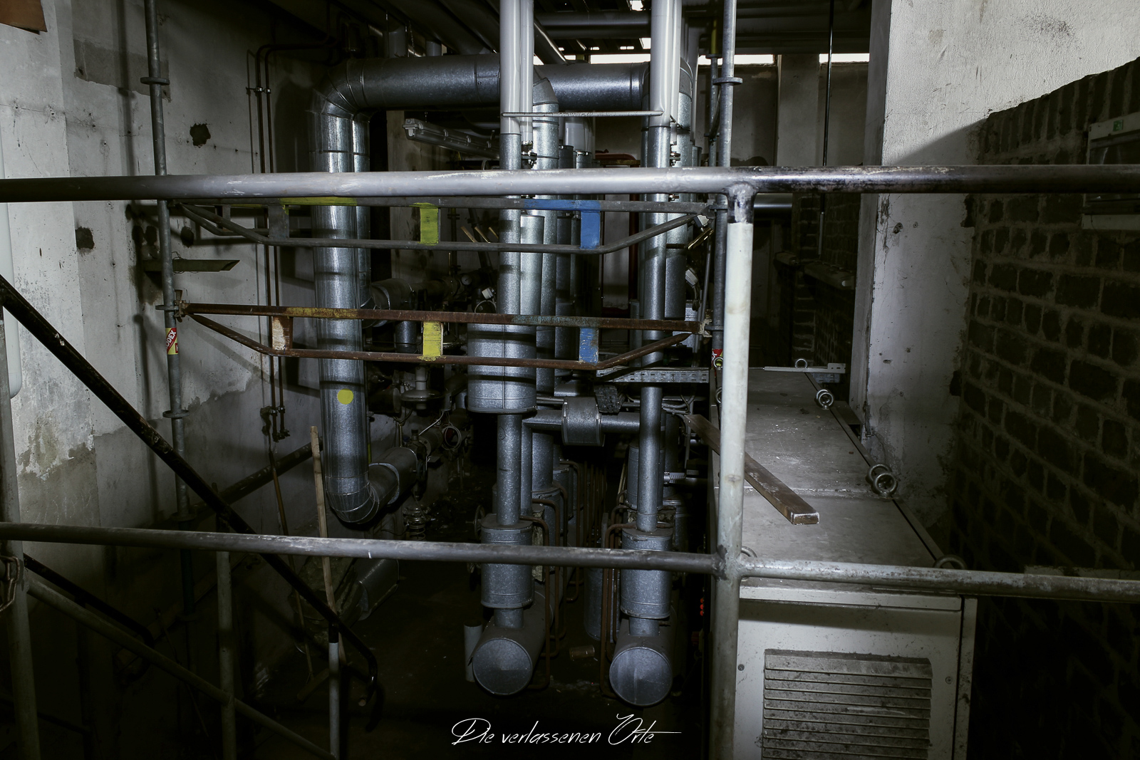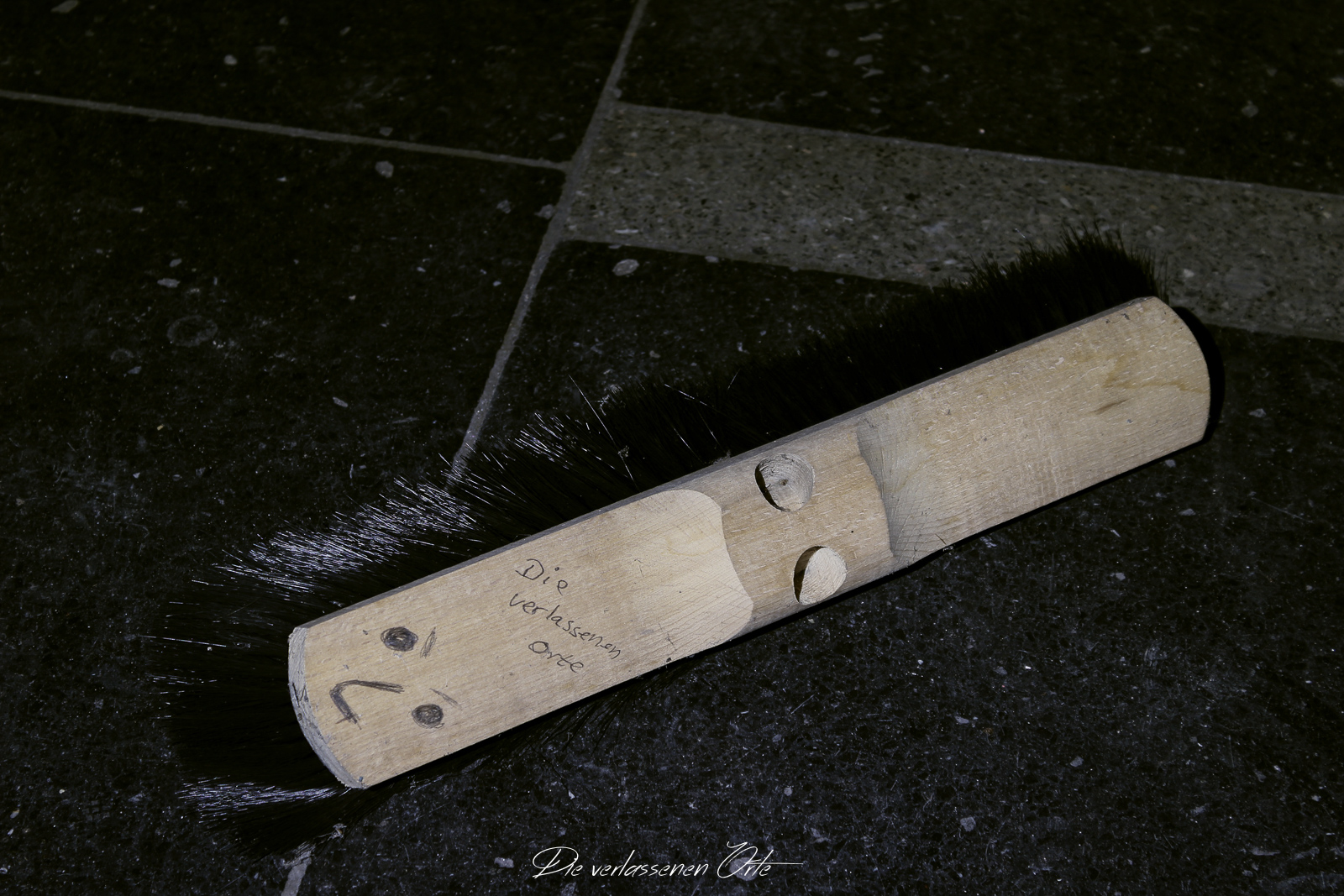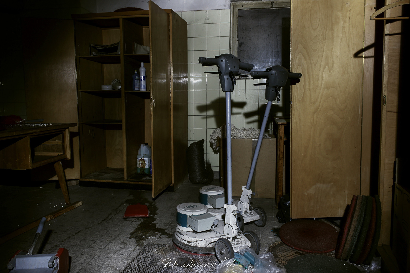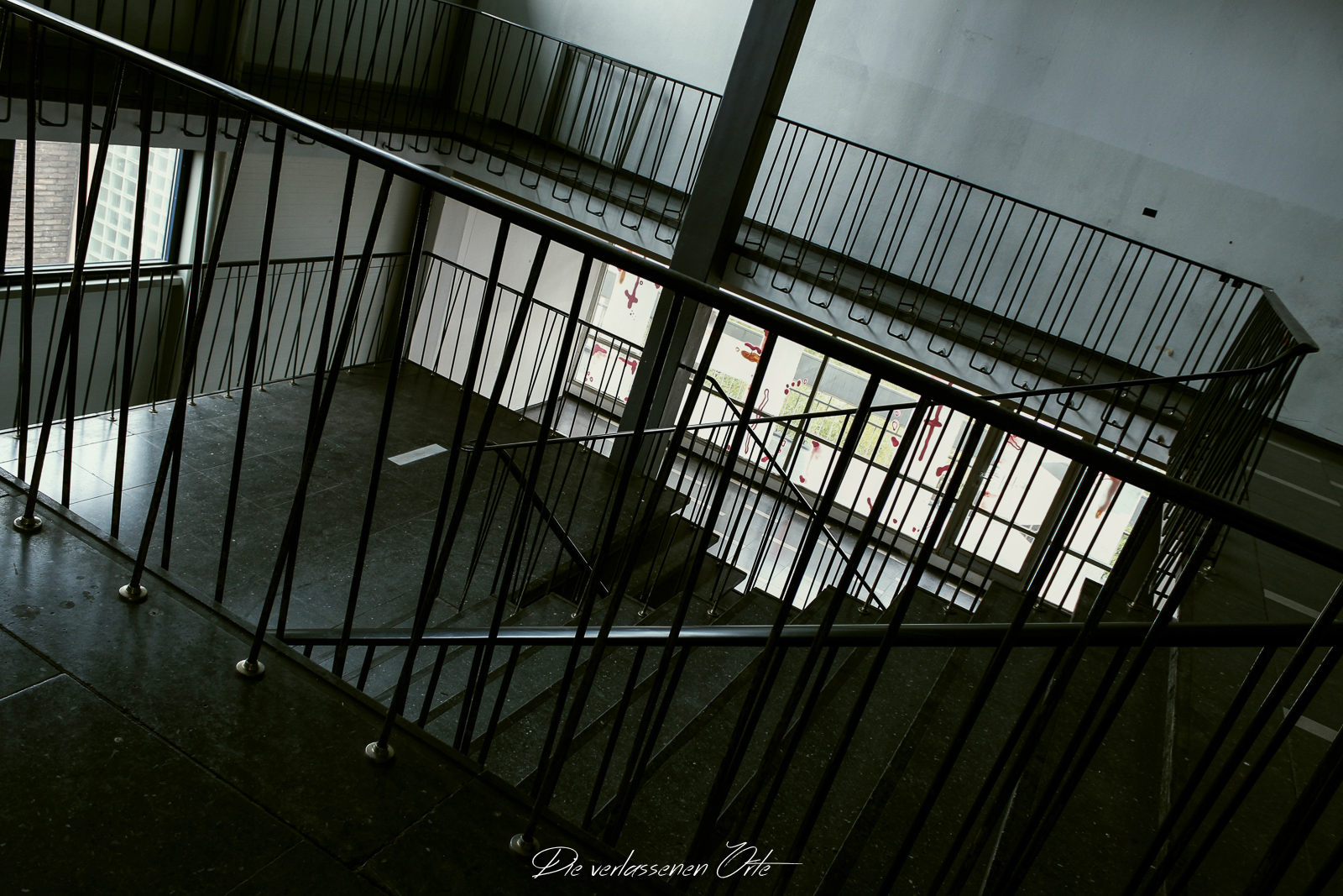 Ich blicke vom Display der Kamera wieder hoch. Nein, alles nur Illusion. Denn es ist still. Absolut still. Das noch mit Strom versorgte Notausgangsschild flackert. Der Zustand dieser Schule ist so beeindrucken gut…da denke ich gerne an meine eigene Schulzeit zurück. Die Schmierereien an der Wand holen mich aus den Gedanken zurück. 1991 lese ich. Das ist schon eine Weile her. An der Tafel stehen immer noch Unterrichtsinhalte. Wahnsinn. Diese Schule ist wirklich sehenswert.