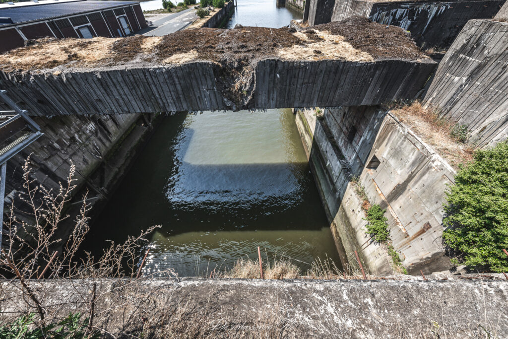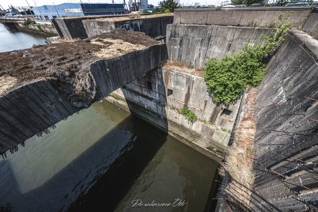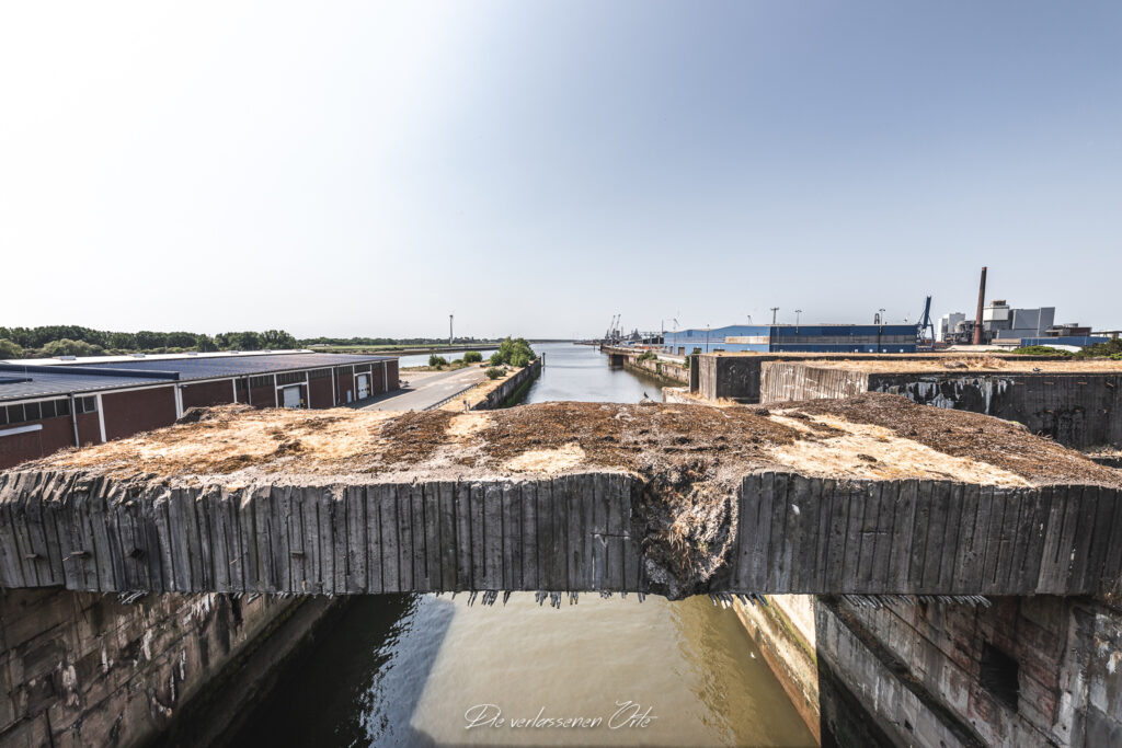 Der teilweise erhaltene Bunker liegt im Bremer Stadtteil Häfen; Ende der 1960er Jahre entstand auf seiner Decke ein Bürogebäude.